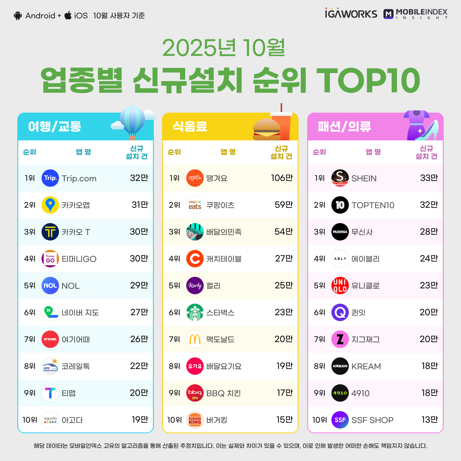 안녕하세요, 모바일인덱스 INSIGHT입니다. 25년 10월에는 과연 어떤 모바일 앱들이 인기를 끌었을까요?